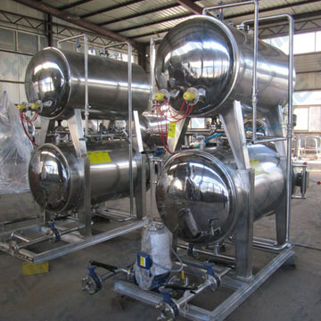 降溫時,外界的涼水直接進入殺菌室與食物接觸,迅速降溫。殺菌完肝,高溫的水被回收到有保溫的熱水罐內(nèi),保存熱量不被散失,節(jié)約了大量熱能,且為下次殺菌做好準備,節(jié)省了時間。