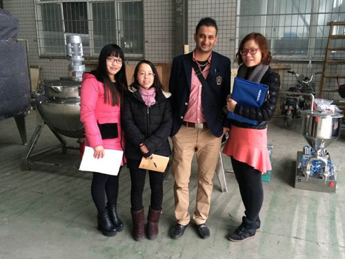 2015年2月3日,坦桑尼亞客戶需要采購一套牛奶生產(chǎn)線設(shè)備,來我公司與業(yè)務(wù)員和技術(shù)工程師進(jìn)行具體需求的洽談,并參觀工廠進(jìn)一步了解牛奶生產(chǎn)線的組成設(shè)備。下圖為業(yè)務(wù)員與客戶合影留念: